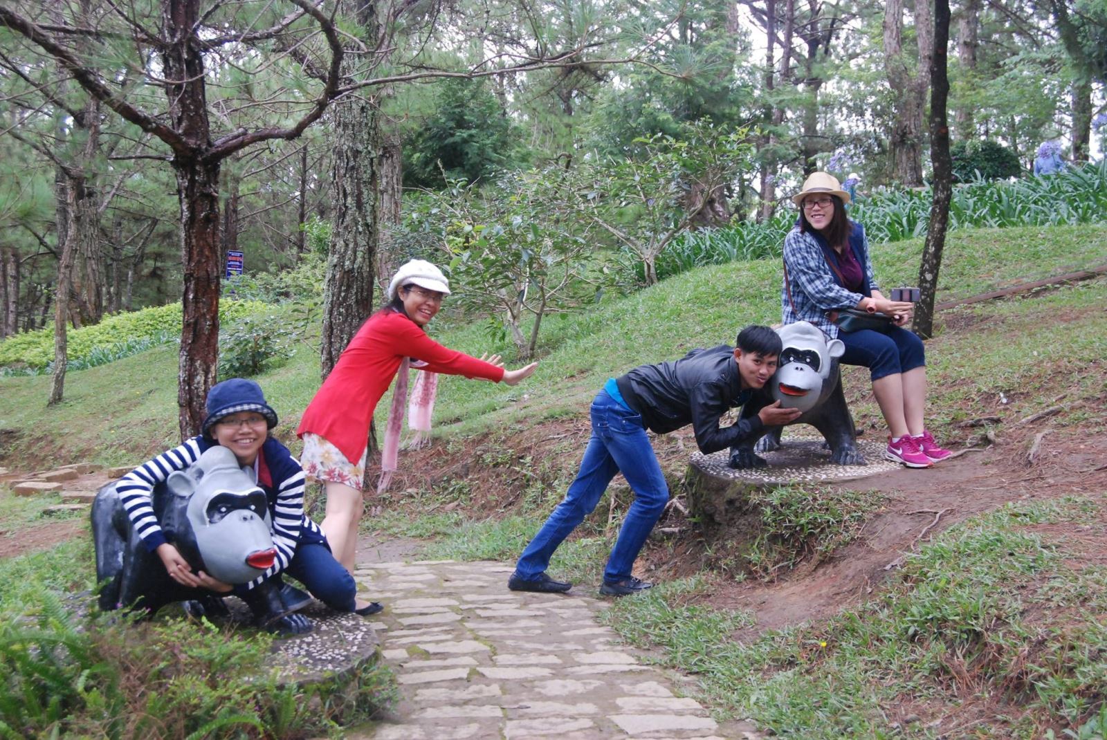 Cựu thực tập sinh Võ Hồng Tuấn vui đùa cùng nhóm phóng viên trẻ trong một chuyến đi Đà Lạt với báo CGvDT |
