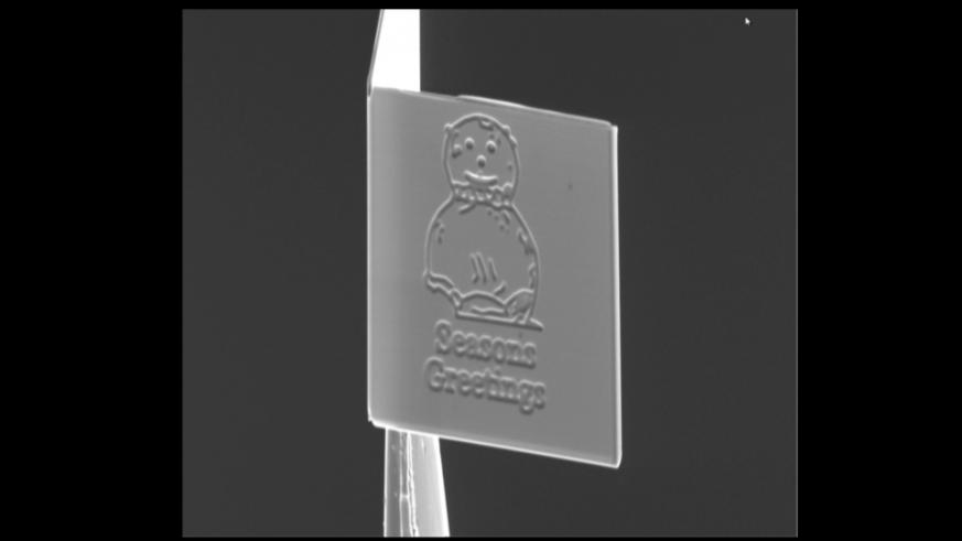 Các nhà khoa học của Phòng thí nghiệm vật lý quốc gia Anh (NPL) đã tạo bức thiệp Giáng Sinh nhỏ nhất thế giới, với kích thước 15 x 20 micrometer. Mỗi micrometer chỉ bằng một phần triệu mét. Tấm thiệp được làm bằng silicon nitride phủ platinum, và hình vẽ được khắc họa bằng chùm tia ion. Mặt ngoài thiệp là hình người tuyết, nằm bên trên dòng chữ “seasons greetings”, còn mặt trong có một thông điệp vui mừng khác. NPL cho hay thiệp Giáng Sinh nhỏ nhất thế giới trước đó có kích thước 200 x 209 micrometer, đồng nghĩa với việc họ đã thu nhỏ được tấm thiệp nhỏ hơn gấp 100 lần. (Theo AFP)