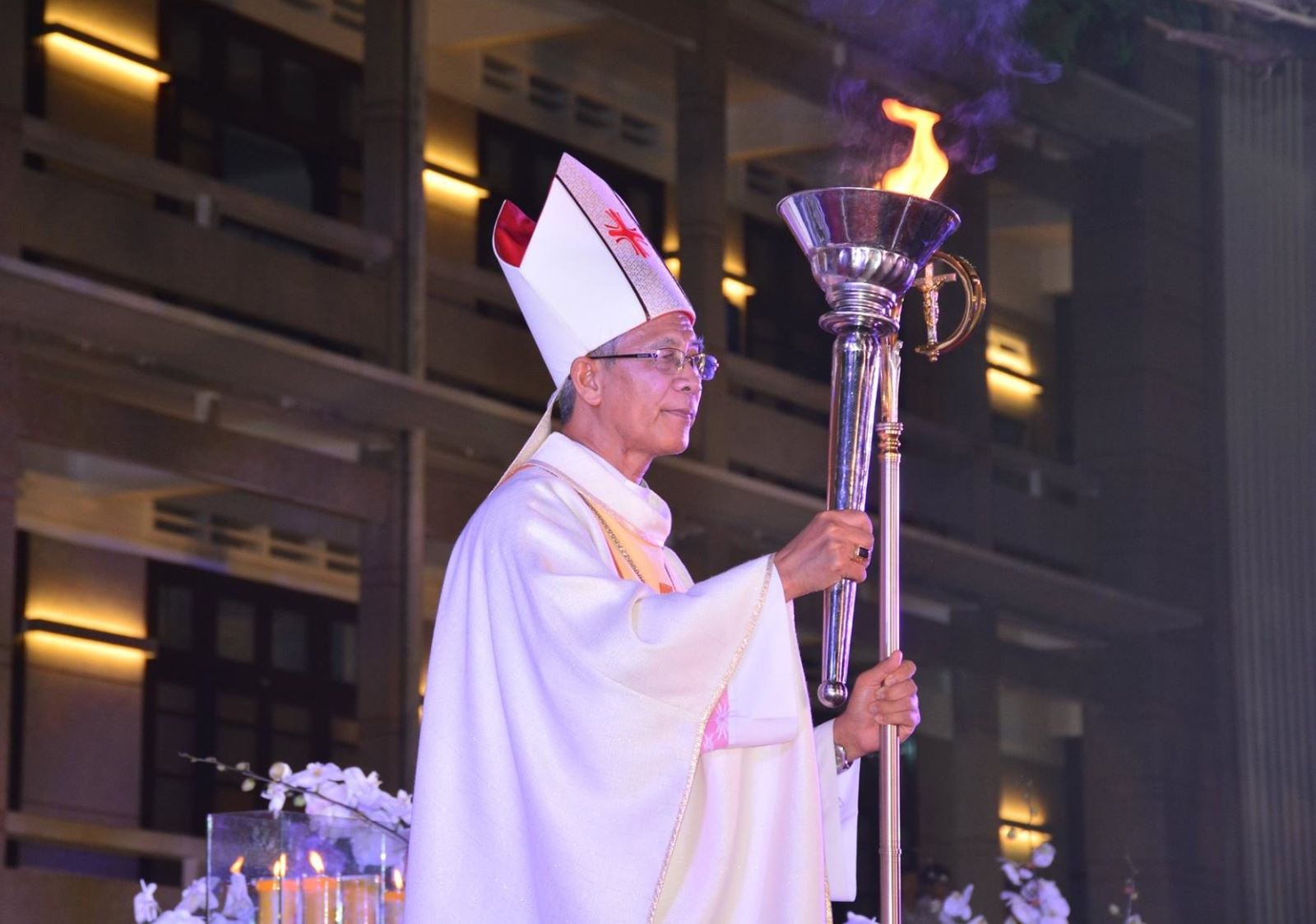 Chủ tế lễ bế mạc Năm Thánh là Đức cha Matthêu Nguyễn Văn Khôi. Ngài dẫn dắt cộng đoàn hướng về lễ đài, được thiết kế theo hình dáng chiếc đại phong cầm, với những đường ống lớn nhỏ hướng lên trời cao, như biểu tượng của bản hợp ca tạ ơn, phát xuất từ hàng vạn trái tim đang thổn thức dâng lên Thiên Chúa bài thánh ca Magnificat của Đức Trinh Nữ Maria được ghi lại trong Tin Mừng. Điểm lại sự kiện khai mạc Năm Thánh giáo phận vào ngày 26.7.2017, Đức cha Matthêu ví đó như mở đầu cho một cuộc hành hương của toàn thể cộng đồng Dân Chúa giáo phận để đi lại lộ trình của hạt giống Tin Mừng được tung gieo theo dòng chảy của thời gian 400 năm qua. Cùng với tâm tình tạ ơn, Đức cha mời gọi cộng đoàn dâng lên Thiên Chúa lòng tri ân về ơn lành và hoa trái thiêng liêng Người đã ban xuống trong suốt Năm Thánh, đặc biệt là ơn toàn xá. “Để lãnh nhận ơn toàn xá, các tín hữu đã hoán cải đời sống, siêng năng lãnh nhận các bí tích và trở nên sốt sắng hơn. Nhờ việc đọc lại lịch sử giáo phận, các tín hữu đã học được những tấm gương sáng của các bậc tiền nhân, thêm lòng yêu mến giáo phận và ý thức hơn về nhiệm vụ loan báo Tin Mừng”, vị chủ chăn chia sẻ. Khép lại bài chia sẻ Tin Mừng, ngài cũng nhấn mạnh về chặng đường mới sau Năm Thánh này và tiếp tục mời gọi mọi người ra đi, làm chứng đức tin, sử dụng hồng ân Năm Thánh như một hành trang để lên đường tung gieo hạt giống Lời Chúa khắp nơi.