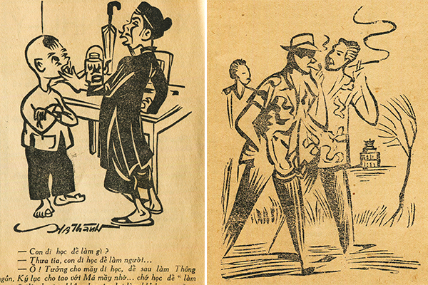 Các tranh biếm họa Tết 1957 Ðinh Dậu, 1960 Canh Tý, 1964 Giáp Thìn khá hài hước về lãnh vực giáo dục. Lúc nào cũng vậy, vai trò người thầy và mục đích giáo dục có lẽ là mối quan tâm thường trực của người dân.