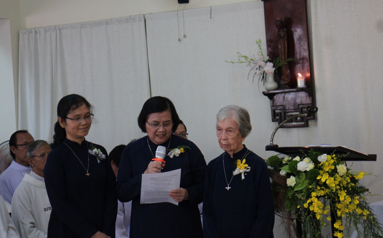 Trước khi kết thúc thánh lễ, ba nữ tu đã bày tỏ tâm tình cảm ơn, tri ân tình Chúa, tình người trước cộng đoàn tham dự. Theo các nữ tu, ba chị em hôm nay không còn cha mẹ, nhưng không thiếu tình cảm, không thiếu thốn gì vì chính dòng Ðức Bà là gia đình. Họ đã chọn gia đình này từ hơn 25 năm hoặc hơn 50 năm và tiếp tục chọn nữa, nơi đây có những người mẹ, người chị và rất nhiều người em “đã và sẽ bên nhau những lúc đớn đau, bên nhau đi suốt cuộc đời”... Các nữ tu cũng thừa nhận chính nơi dòng Ðức Bà này, họ đã bao lần cảm thấy “vương vấn bước chân ra đi và ấm áp trái tim quay về”.