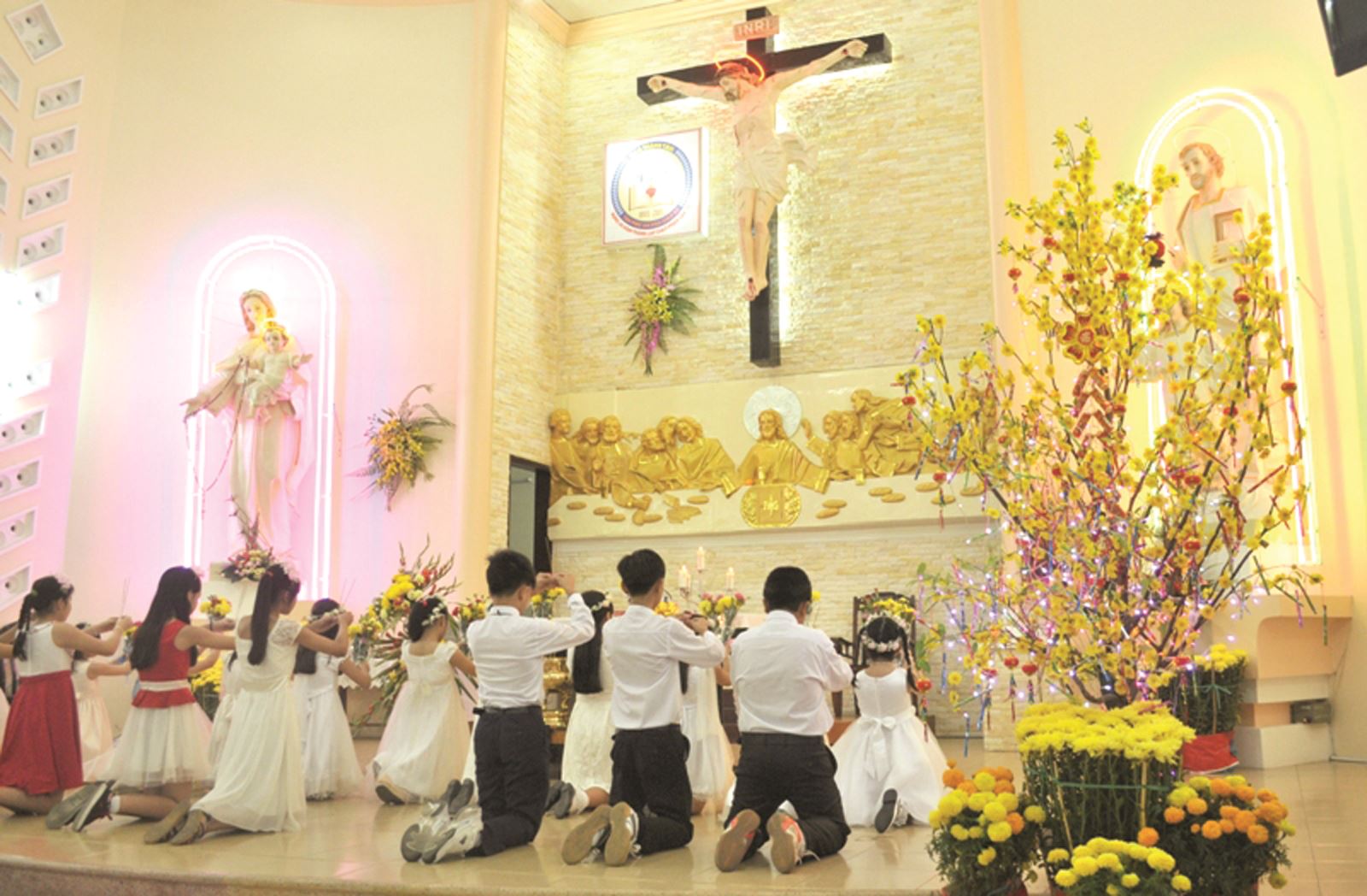 Ở các xứ đạo Công giáo, giáo dân tổ chức đón giao thừa với những lễ thức khác nhau, dưới đây là ví dụ ở giáo xứ Châu Bình.