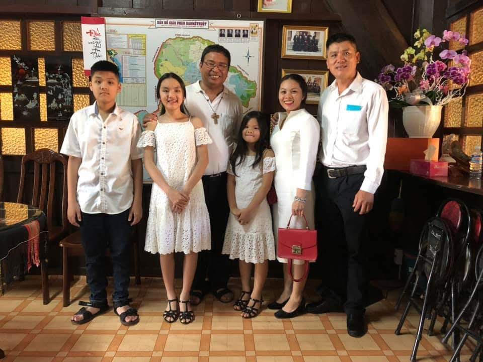Gia đình nhỏ của anh Tuấn bên cạnh vị mục tử GP Ban Mê Thuột