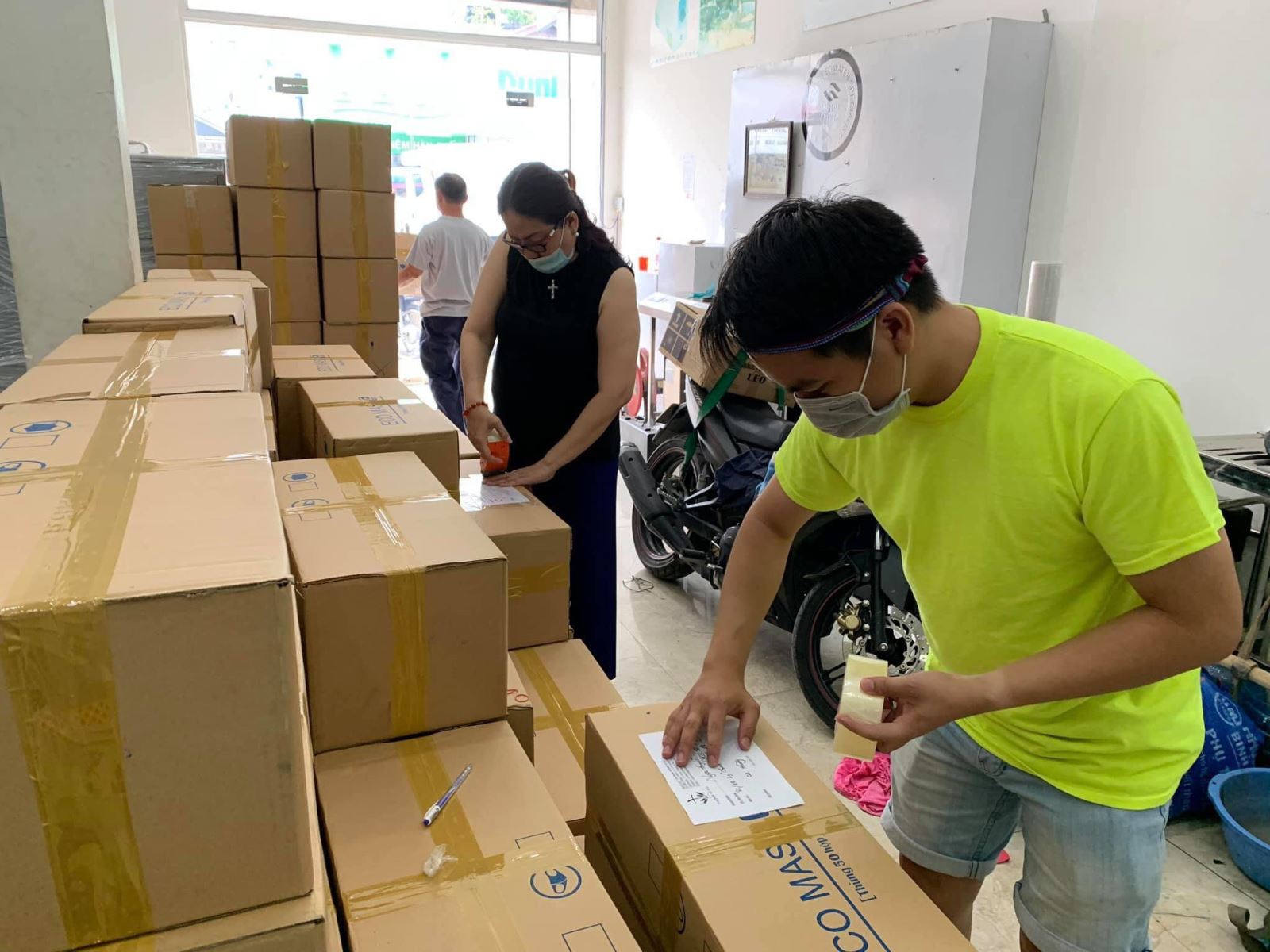 Sau khi tiếp nhận thông tin trên mạng xã hội, các thành viên trong ca đoàn gọi điện liên hệ xác nhận một lần nữa để đảm bảo không có người xấu lợi dụng trục lợi. Hầu như các nơi đều nhận được một thùng 500 khẩu trang. Riêng đối với những nơi cực kỳ thiếu thốn thì sẽ nhận được hai thùng. Anh Phú kể, mỗi lần nhóm sẽ gom các đơn với tổng số lượng khoảng vài chục thùng rồi luân phiên nhau chở xe máy ra bưu điện. Mỗi xe chỉ chở được hai thùng khẩu trang nên phải đi tới đi lui nhiều lần:“Với tâm niệm sẻ chia tình liên đới, từng công việc dù nhỏ nhặt nhất cũng đều tự tay các anh chị em trong ca đoàn làm. Dù công việc có phiền hà vất vả nhưng mọi người đều sẵn lòng cho đi với niềm vui”. Khi đến bưu điện gởi hàng, họ yêu cầu phải có giấy chứng nhận xuất xứ khẩu trang rõ ràng, đạt chuẩn mới cho chuyển phát đi.