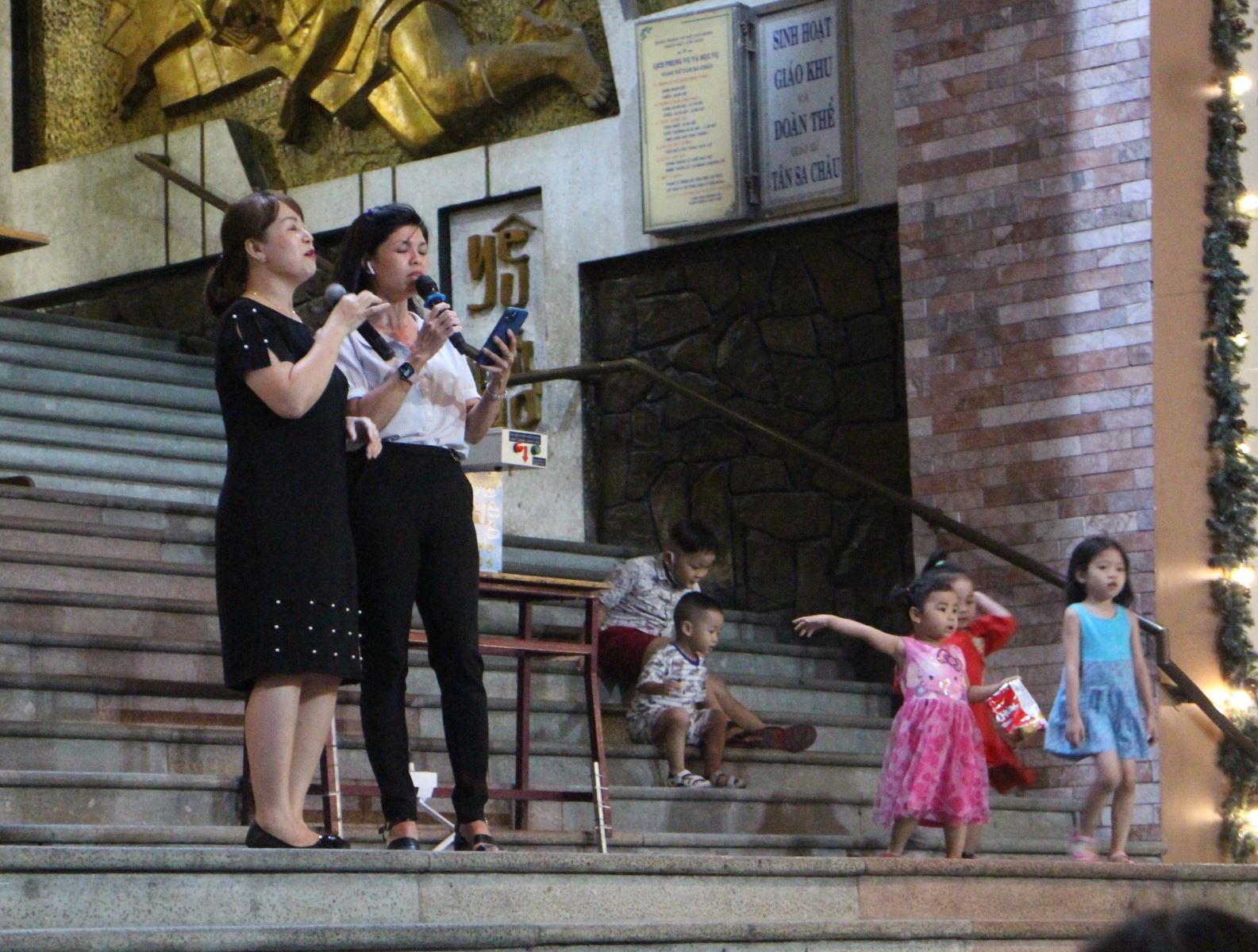 Trên sân nhà thờ, trẻ con chạy nhảy, nô đùa theo tiếng đàn, tiếng hát. Vợ chồng dắt con nhỏ đi chơi, ghé vào ngồi uống nước; bà dẫn cháu đến, trên tay còn cầm theo cây quạt... Một số người ngoại đạo đến xem hang đá, tiểu cảnh Noel, nhân tiện nghe hát thánh ca mừng Giáng Sinh, cũng thấy thú vị!
