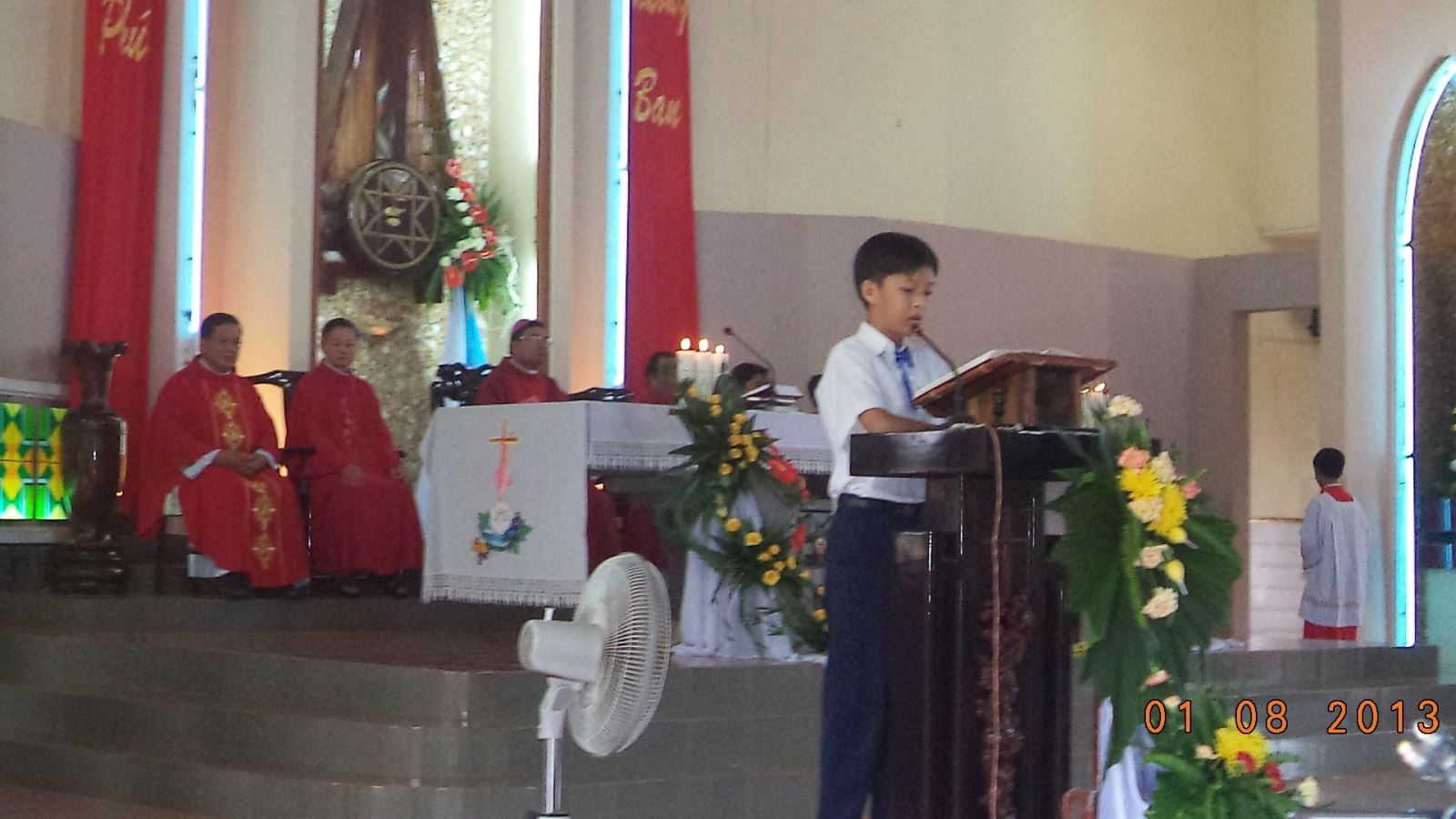 Được chọn đọc sách thánh trong thánh lễ Thêm Sức tại nhà thờ giáo xứ Bù Đăng
