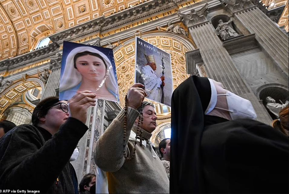 Đông đảo các tín hữu xếp hàng đợi đến lượt vào viếng |