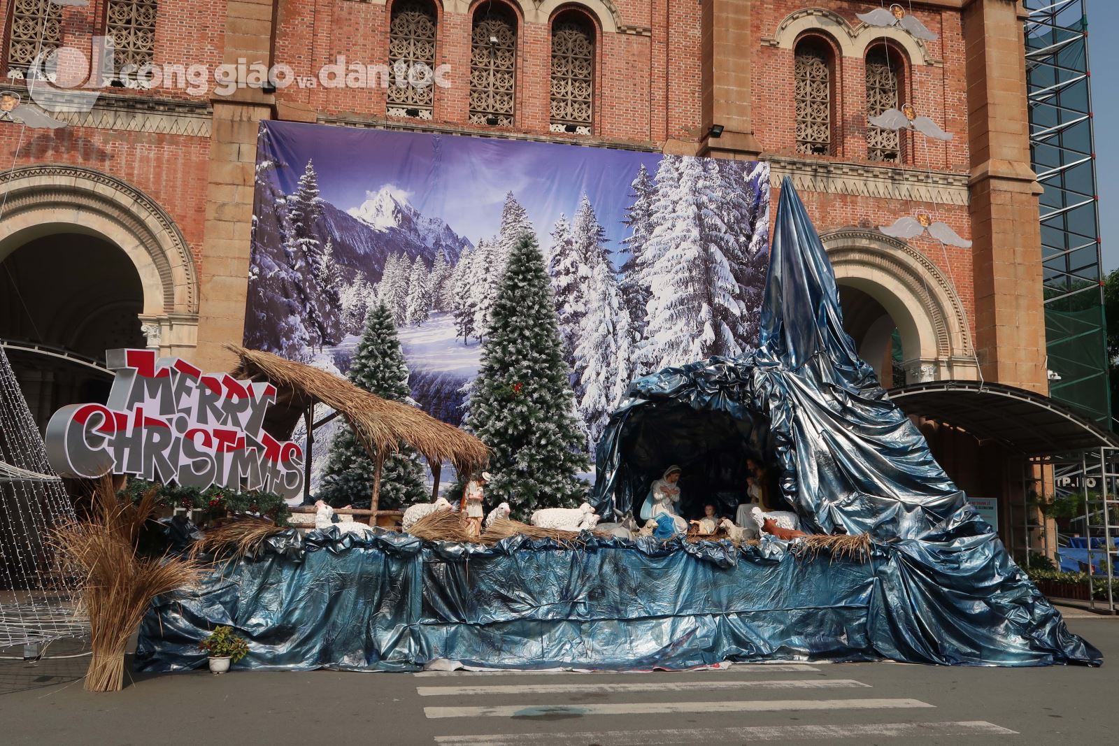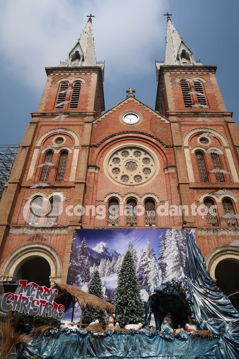 Đang trong giai đoạn trùng tu nhưng không khí chào đón Ngôi Hai Giáng Trần vẫn rộn ràng ở nhà thờ Chánh tòa Đức Bà Sài Gòn.