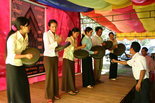 Thiếu nhi múa dâng hoa trong trang phục truyền thống