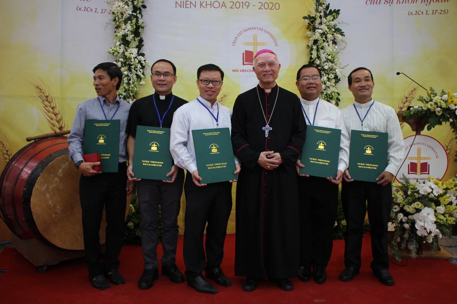 Cũng trong buổi khai giảng, có 12 sinh viên là linh mục, tu sĩ đã được trao bằng cử nhân Thần học. Linh mục Antôn Nguyễn Cao Siêu - Phụ tá Viện trưởng, quyền Trưởng khoa Thần học cho biết, các cử nhân nhận bằng hôm nay đã theo học từ 2 - 3 năm. Họ là những người có mặt từ khi Học viện mới khai sinh, đã chấp nhận những khó khăn bước đầu để theo đến cùng... Cha Antôn ước mong 3 năm nữa, những người lên lãnh bằng không chỉ là linh mục, tu sĩ mà có cả giáo dân.
