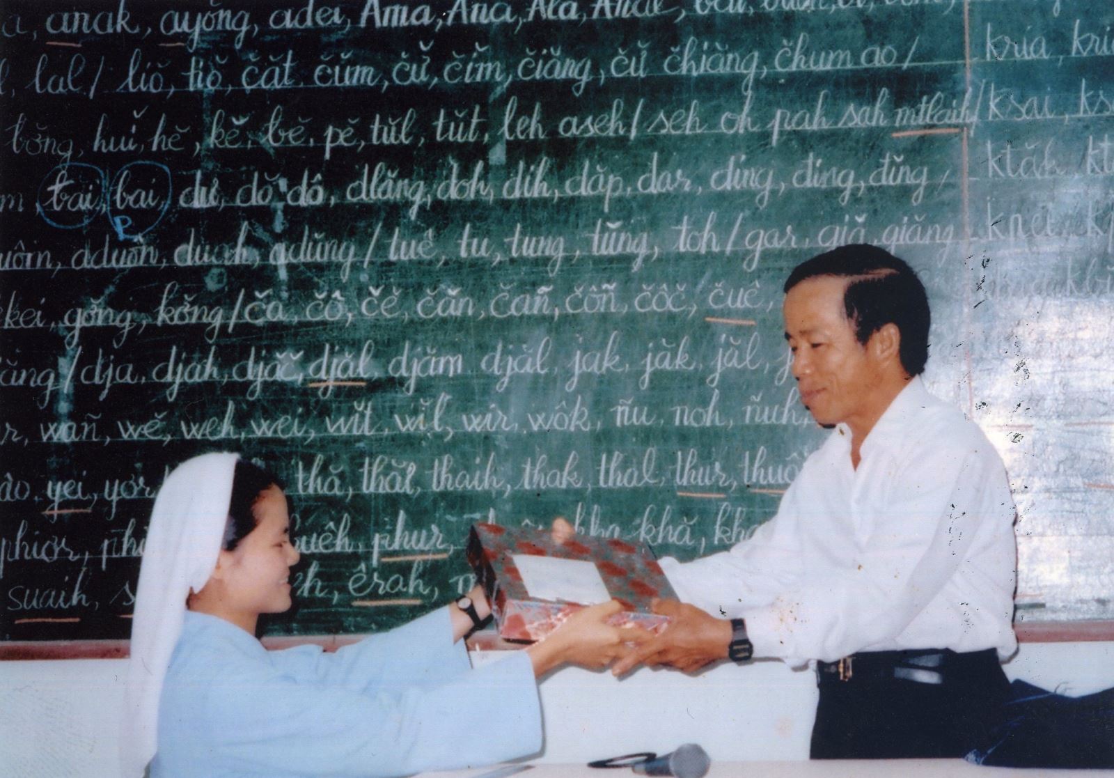 Về tài liệu giảng dạy, bên cạnh việc sử dụng bộ sách tiếng Ê đê chuẩn, ông còn tự soạn thêm một giáo trình riêng. Đó là thành quả của cả tuổi trẻ sinh sống, trải nghiệm nơi đồng bào dân tộc. Theo sát từng học viên, ông không những mở mang kiến thức mà còn mang Tin Mừng đến cho họ. “Cuộc sống của người đồng bào là những chuỗi ngày khó khăn. Họ lao động vất vả, ít được học đến nơi đến chốn, trai gái còn nhỏ đã ra nương làm lụng, khổ vô cùng nên càng cần phải giúp họ”, ông chia sẻ.