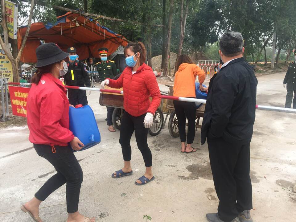 Tiếp tế những vật dụng cần thiết cho bà con bên trong xã Sơn Lôi - ảnh: giadinhbacninh.com