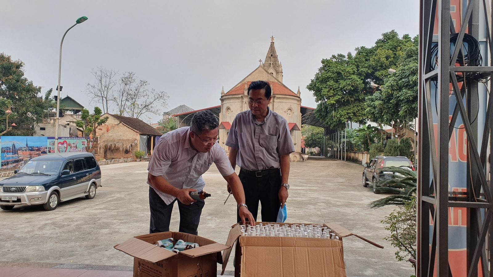 Các vật dụng y tế cần thiết đang được tập kết tại nhà xứ để chuyển vào cho bà con vùng dịch