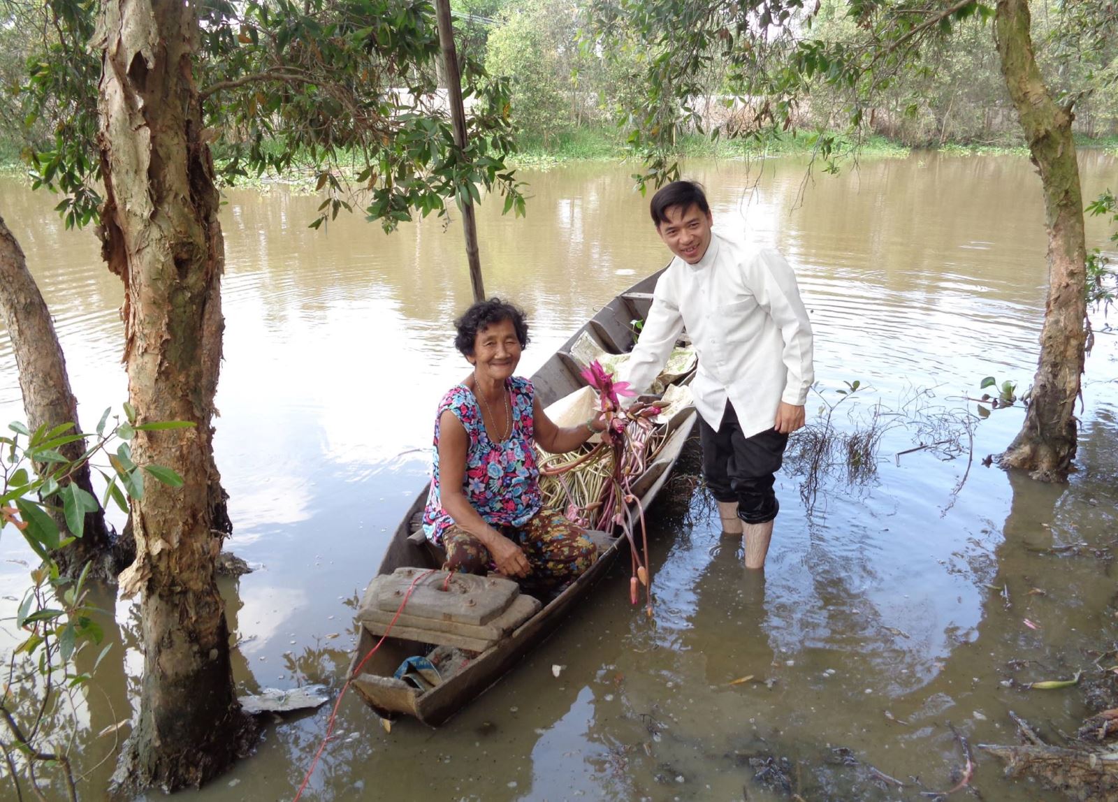 Ông cố đi thăm và phụ hái bông súng với bà cụ