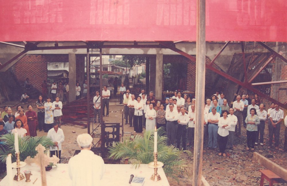 Thánh lễ thượng kèo ngôi giáo đường thời điểm xây dựng - ảnh giáo xứ cung cấp |