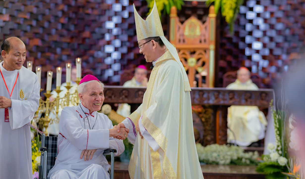 Thánh lễ khởi đầu sứ vụ Giám mục Chánh tòa của Đức cha Giuse Đỗ Quang Khang và thánh lễ tạ ơn kết thúc sứ vụ Giám mục Chánh tòa của Đức cha Cosma Hoàng Văn Đạt đã được cử hành vào sáng 18.7.2023 tại nhà thờ Chánh tòa Bắc Ninh. Đức cha Giuse Đỗ Quang Khang chủ tế thánh lễ cùng với Đức Hồng y Phêrô Nguyễn Văn Nhơn; các Đức TGM Hà Nội, Huế, TPHCM; Giám mục đoàn; linh mục cùng sự hiện diện của tu sĩ nam nữ, chủng sinh, giáo dân trong và ngoài giáo phận. Trong bài giảng, Đức TGM Huế Giuse Nguyễn Chí Linh mời gọi cộng đoàn cầu nguyện cho Đức cha Giuse tân nhiệm trong sứ vụ mới và Đức cha Cosma mãn nhiệm được bình an. (giaophanbacninh.org)