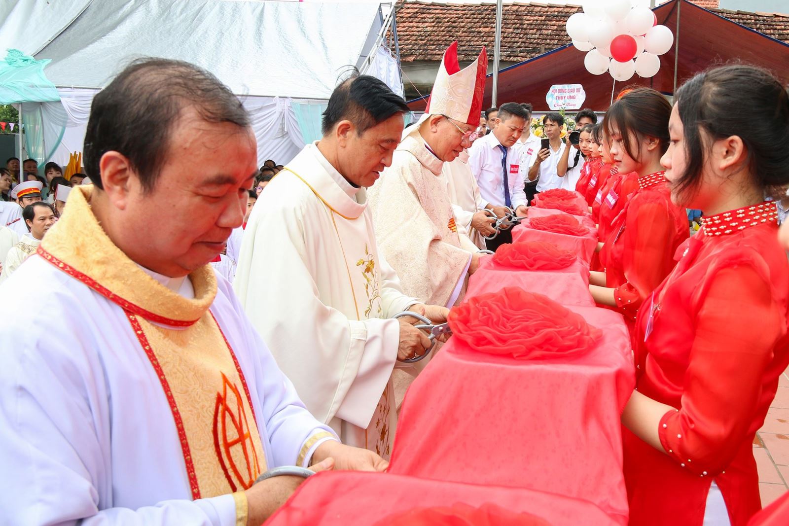 Sáng 25.6.2023, Đức Tổng Giám mục Giuse Vũ Văn Thiên - TGP Hà Nội - đã đến thăm mục vụ và chủ sự thánh lễ làm phép nhà thờ giáo họ Địch Vĩ, thuộc giáo xứ Thụy Ứng, giáo hạt Chánh tòa. Đón nhận đức tin từ những năm 1909, giáo họ Địch Vĩ hiện có 80 hộ gia đình với 333 nhân danh. Ngôi thánh đường được khởi công vào ngày 28.11.2019 đến nay đã hoàn thiện. Chia sẻ niềm vui với giáo xứ, giáo họ, Đức TGM Giuse mời gọi mỗi tín hữu hãy xây dựng công trình nhà thờ thiêng liêng là tâm hồn mỗi người, để tâm hồn được sưởi ấm nhờ Lời Chúa và nhờ tình huynh đệ trong cộng đoàn đức tin. (tonggiaophanhanoi.org)