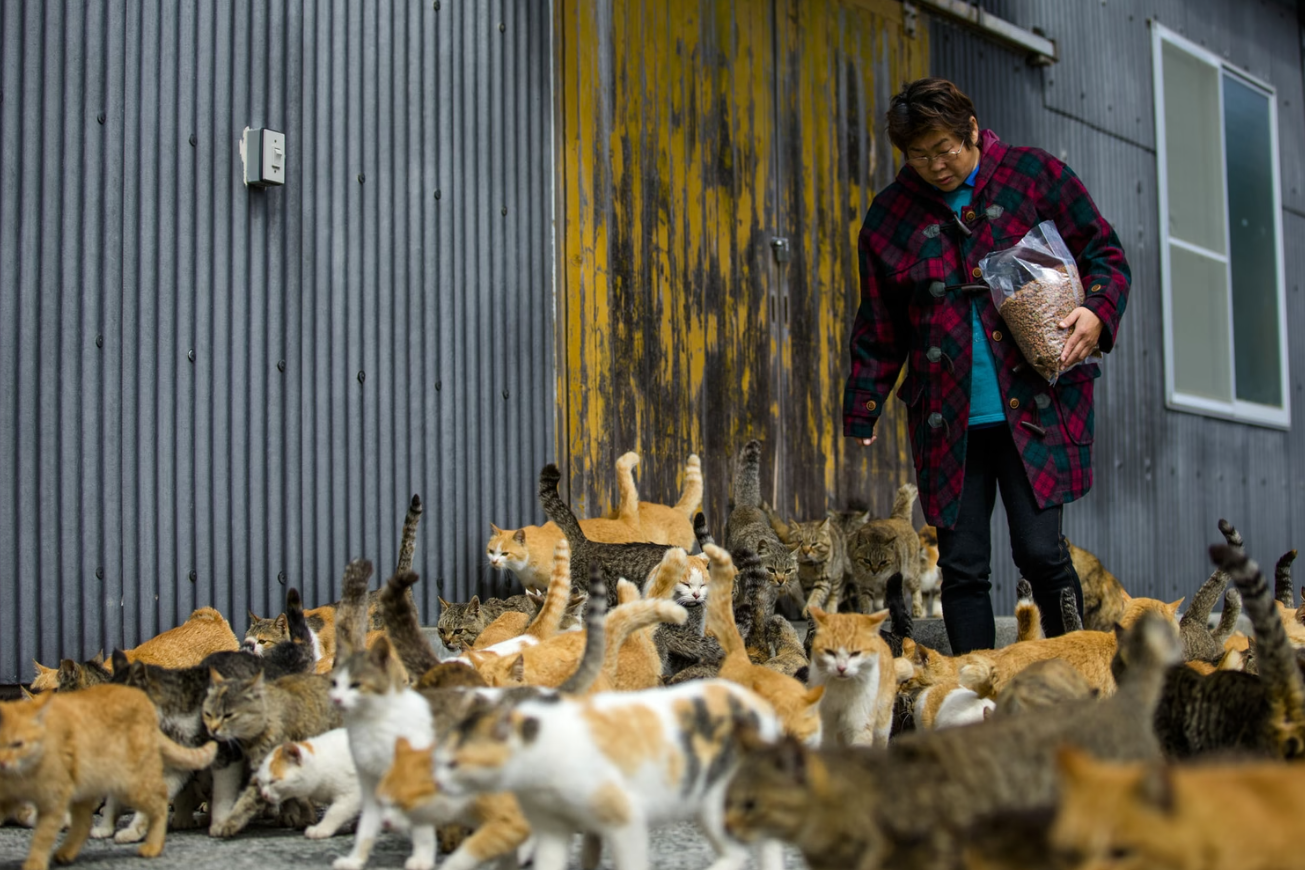 Từng là một làng chài sầm uất và nhộn nhịp ở miền tây nam Nhật Bản, Aoshima giờ đây chỉ còn 6 người ở, nhưng có đến hàng trăm con mèo, và vì thế được gọi là “Đảo mèo”.
