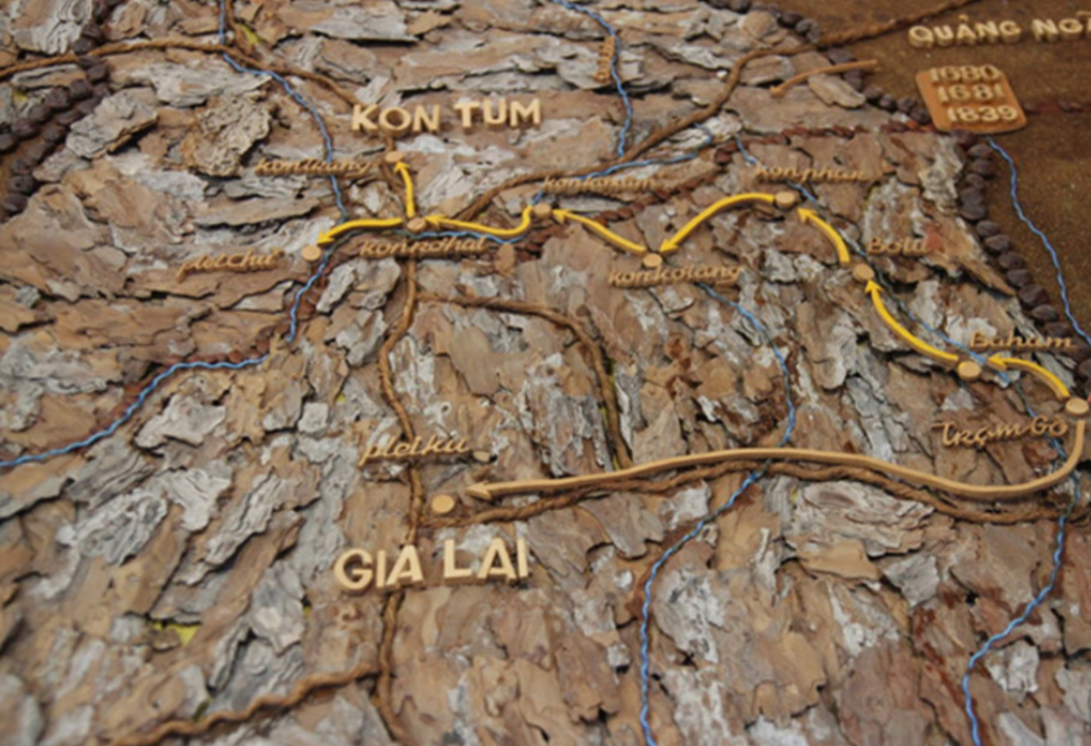 Bản đồ con đường truyền giáo Tây nguyên tại phòng truyền thống giáo phận Kontum |