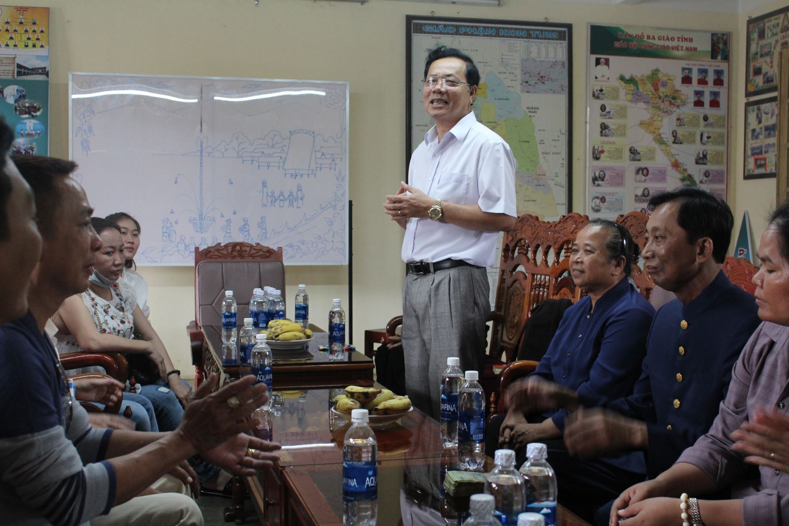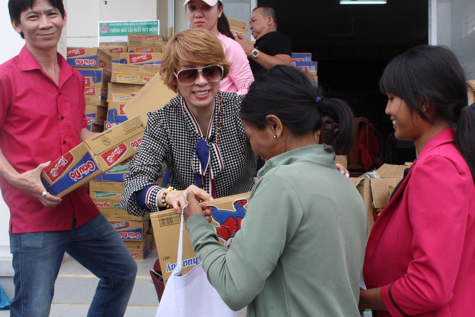 Từ sáng sớm, đoàn đã có mặt tại khuôn viên của dòng Ảnh Phép Lạ. Sau khi thăm hỏi, tặng quà, đoàn tiếp tục di chuyển tới xã Sa Bình. Nhờ được thông báo và phát phiếu từ trước, bà con đã đến tập trung đông đúc trong sân Ủy ban xã. Chỉ tay về trái núi phía xa xa, anh A Gio, người dân tộc Jơrai thật thà:“Tôi sợ trễ nên đi từ sớm. Nhà cách đây 5, 6 cây số đó”. Nhiều người dân nơi đây cho hay, sau tháng 8, vụ mùa của họ đã kết thúc. Từ đây đến Tết, đời sống của bà con vô cùng khó khăn bởi không có công việc ổn định ngoài đi làm thuê, mướn cho một số gia đình khá giả hơn. Trong số người dân đến nhận quà, có không ít những cụ ông, cụ bà tuổi đã cao, xếp hàng lẫn vào đám đông, trên tay là những chiếc bao bố, bao xốp để chứa quà đã chuẩn bị sẵn từ nhà. Niềm vui, sự háo hức của cả người trao lẫn người nhận làm không khí càng thêm nồng ấm.