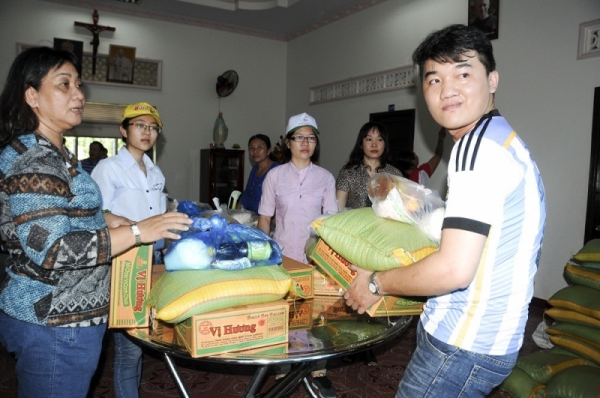 Nhóm Bác ái tự phát giáo xứ Tân Phú đã đến thăm và tặng quà cho các bà mẹ lỡ lầm đang sống tại dòng MTG Thủ Ðức và cho 150 gia đình có hoàn cảnh khó khăn tại giáo xứ Hòa Hội, Vũng Tàu, ngày 1.10.2017. (tgpsaigon.net)