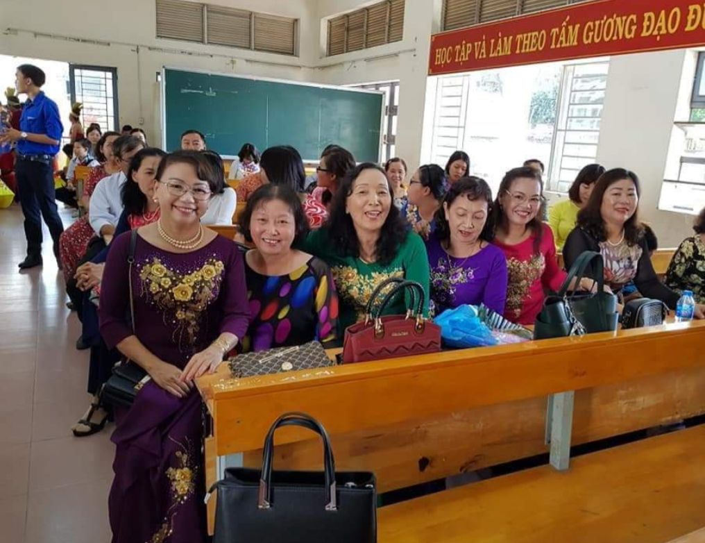 Các cô giáo hưu hẹn nhau mặc áo dài mới về tham dự ngày tri ân thầy cô |